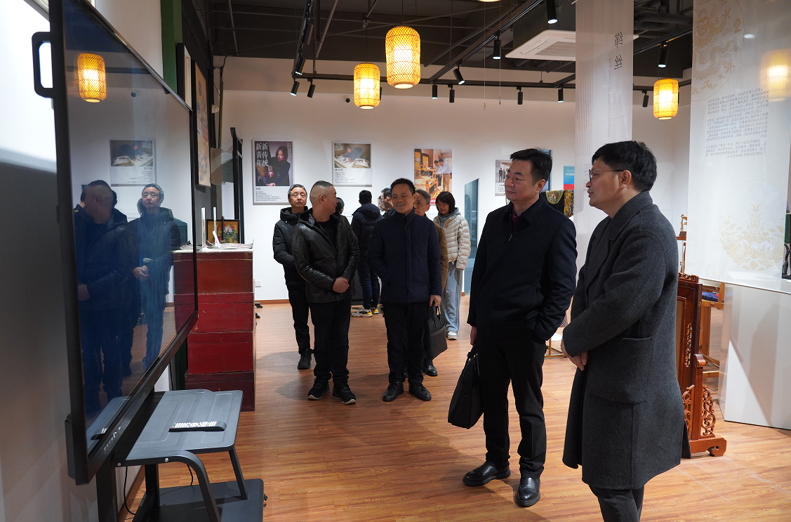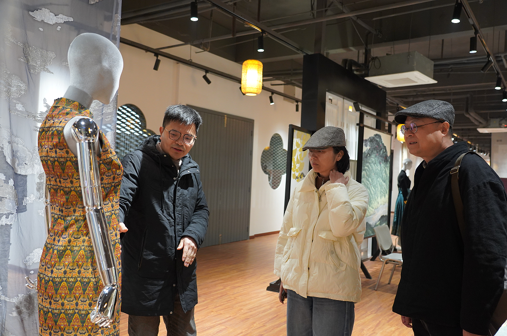 海宁籍书画家、首都师范大学美术学院副教授查律来访参观考察家纺城纺织非遗创意馆