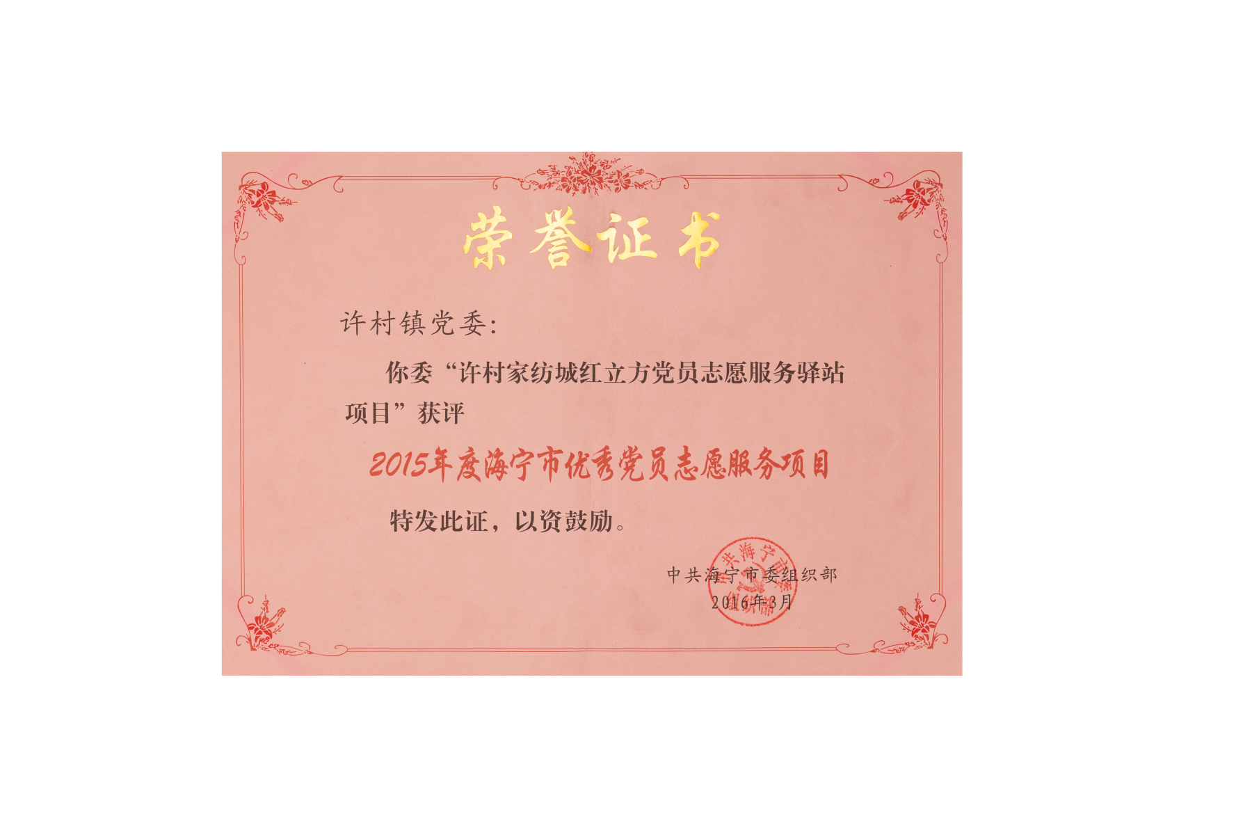 2015年度海宁市优秀党员志愿服务项目