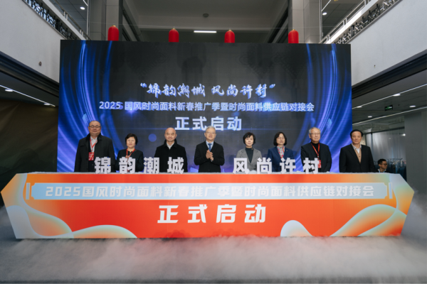 开幕式上,举行了“锦韵潮城 风尚许村”2025国风时尚面料新春推广季暨时尚面料供应链对接会启动仪式。