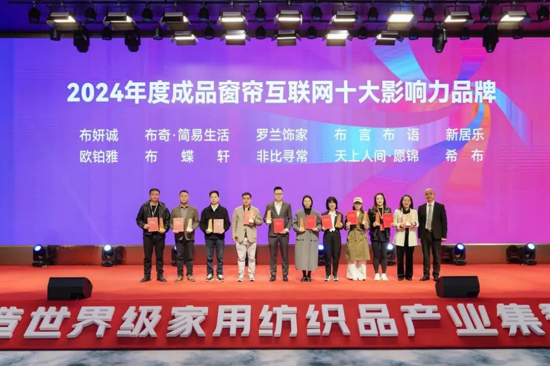 在数字经济与传统产业深度融合的浪潮中,布艺直播领域迎来群雄逐鹿的创新发展期。头部企业、新锐直播机构及技术服务商等多元主体竞相布局,通过场景化内容创新、供应链数字化重构及全链路营销升级,为纺织产业的传播推广与转型升级注入澎湃动能。此次活动还为直播转型优秀门店、2024年度成品窗帘互联网十大影响力品牌、赋能门店同城直播优秀机构颁奖,并邀请代表分享经验与见解。颁奖仪式上,布妍诚港区店、欧博雅于都店、布妍诚广汉店、布蝶轩金华店、布蝶轩南昌店、欧博雅合川店、布蝶轩西安店、布言布语上海浦东店、布言布语平湖店、布奇简易生活眉山店、布蝶轩上海浦东店、布言布语西藏拉萨店、布蝶轩连云港店、布妍诚余姚玉立路店、布妍诚成华店、欧铂雅潍城店、欧铂雅新罗店、布语空间南宁店、罗兰饰家福州福泉店、罗兰饰家河南永城店等20家门店荣获“直播转型优秀门店奖”;布妍诚、布奇、罗兰世家、布言布语、新居乐、欧铂雅、布蝶轩、非比寻常、天上人间、希布等10个品牌荣获“2024年度成品窗帘互联网十大影响力品牌”;海宁中国家纺城直播基地荣获“赋能门店同城直播优秀机构奖”。