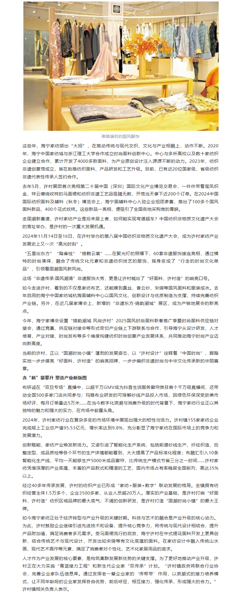 浙报整版 | 海宁市许村镇:一块“布”织出一座“国潮时尚小镇”