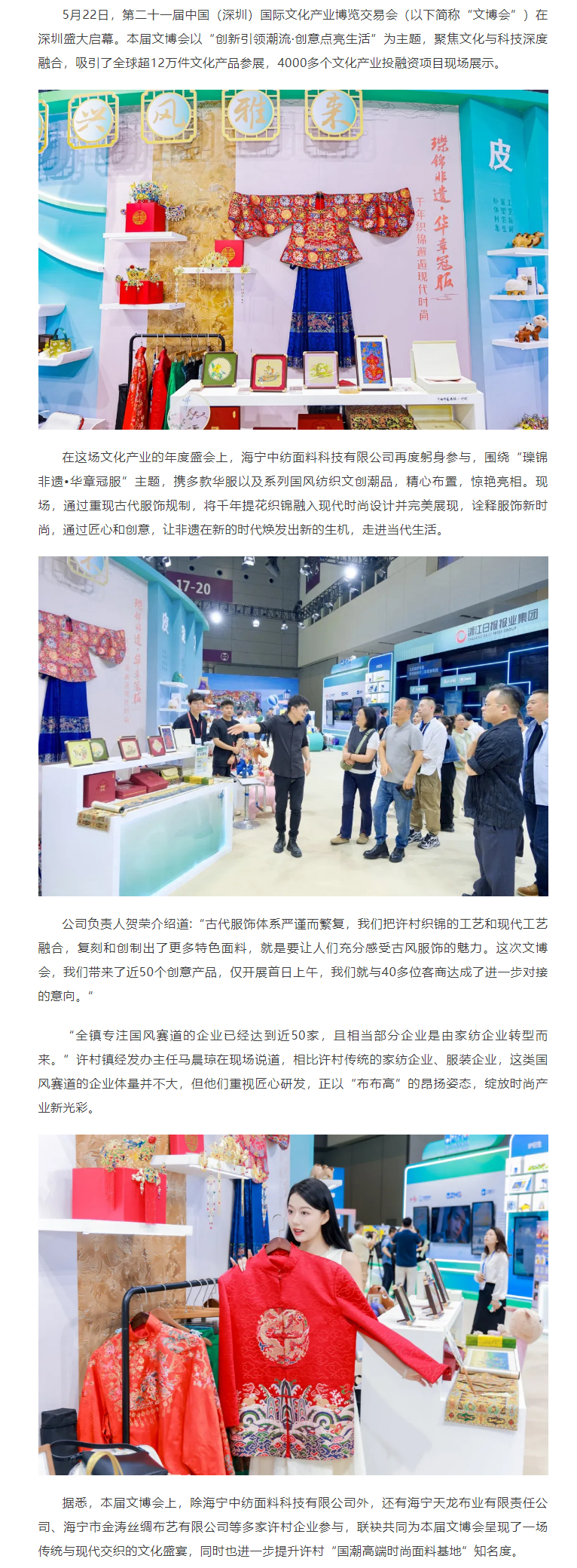 海宁中纺面料科技有限公司再度惊艳亮相深圳文博会