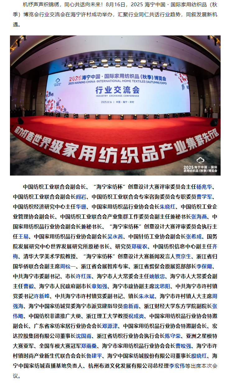 2025海宁中国·国际家用纺织品(秋季)博览会行业交流会举行